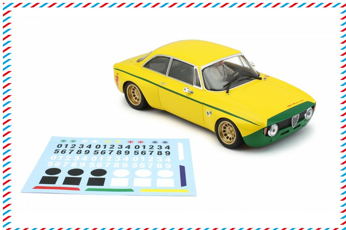 Alfa Giulia Edition yellow/green mit Beklebungssatz BRM Slotcar BRM142Y slotcar. You can find more BRM slot car models at: : BRM slotcars
