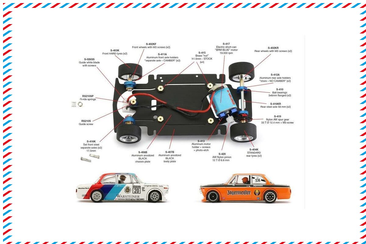 Ready to race slotcar, including magnets, ball bearings and metal Chassis.