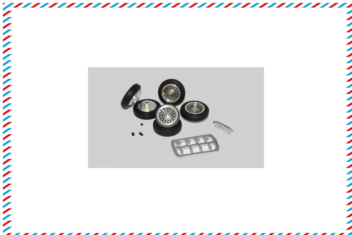 Complete wheels Ø25,5x7mm Oldtimer-SpeichenRims silber Vollgummi auf AluminiumRims inkl. Zubehör f.Slotcars 1:32 diverse Marken m.Ø2,38mm Axle n BRMS-124More sparparts and tuningparts for BRM slotcars you´ll find here : BRM slotcar Ersatzeile spare parts Tuning