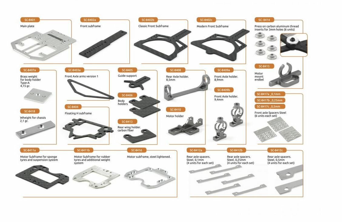 Achsträgerdistanz vorne u.hinten 0,1mm (8) SC8127D Scaleauto