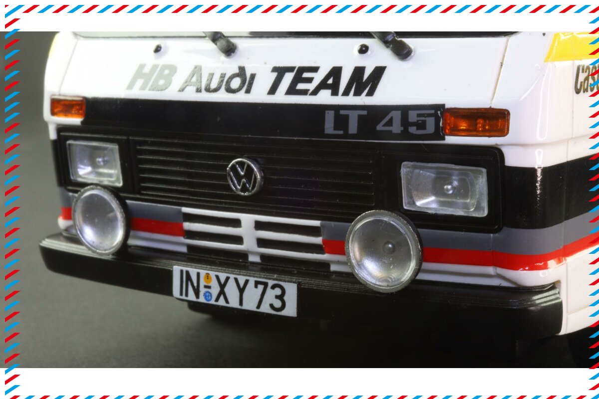 VW LT45 mit Trailer und Audi S1 Rally 400 Rally HB Nr.2 Premium collection . Wunderschön detailliertes Avant slot Slotcar Modell in 1/32 für analoge Autorennbahnen.
